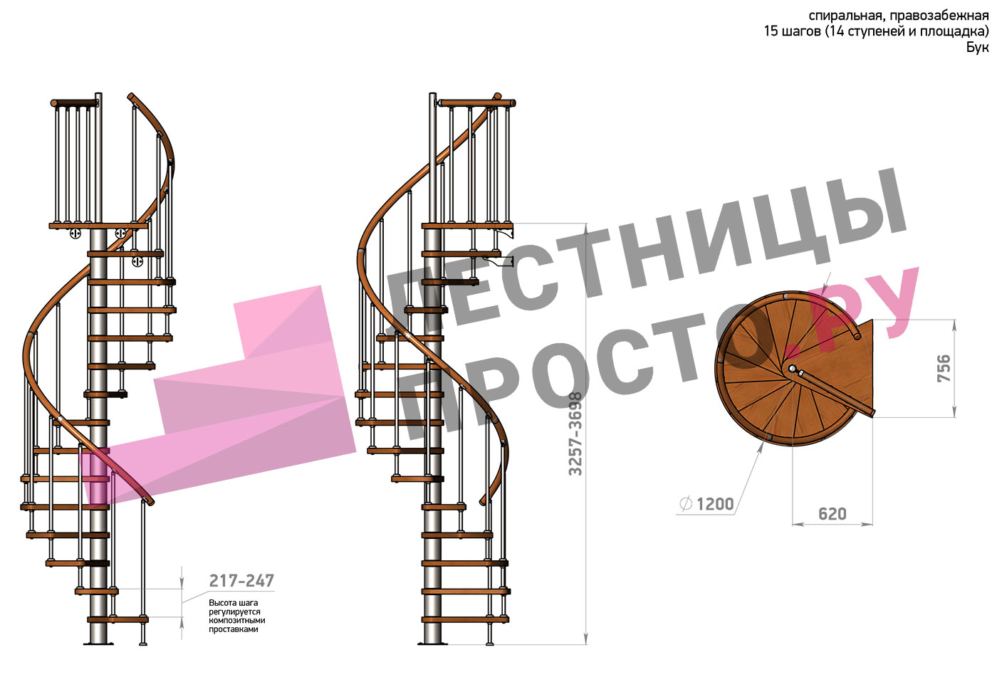 | Винтовая лестница Prosto Spiral White D120см, h325.7-369.8 см, бук |