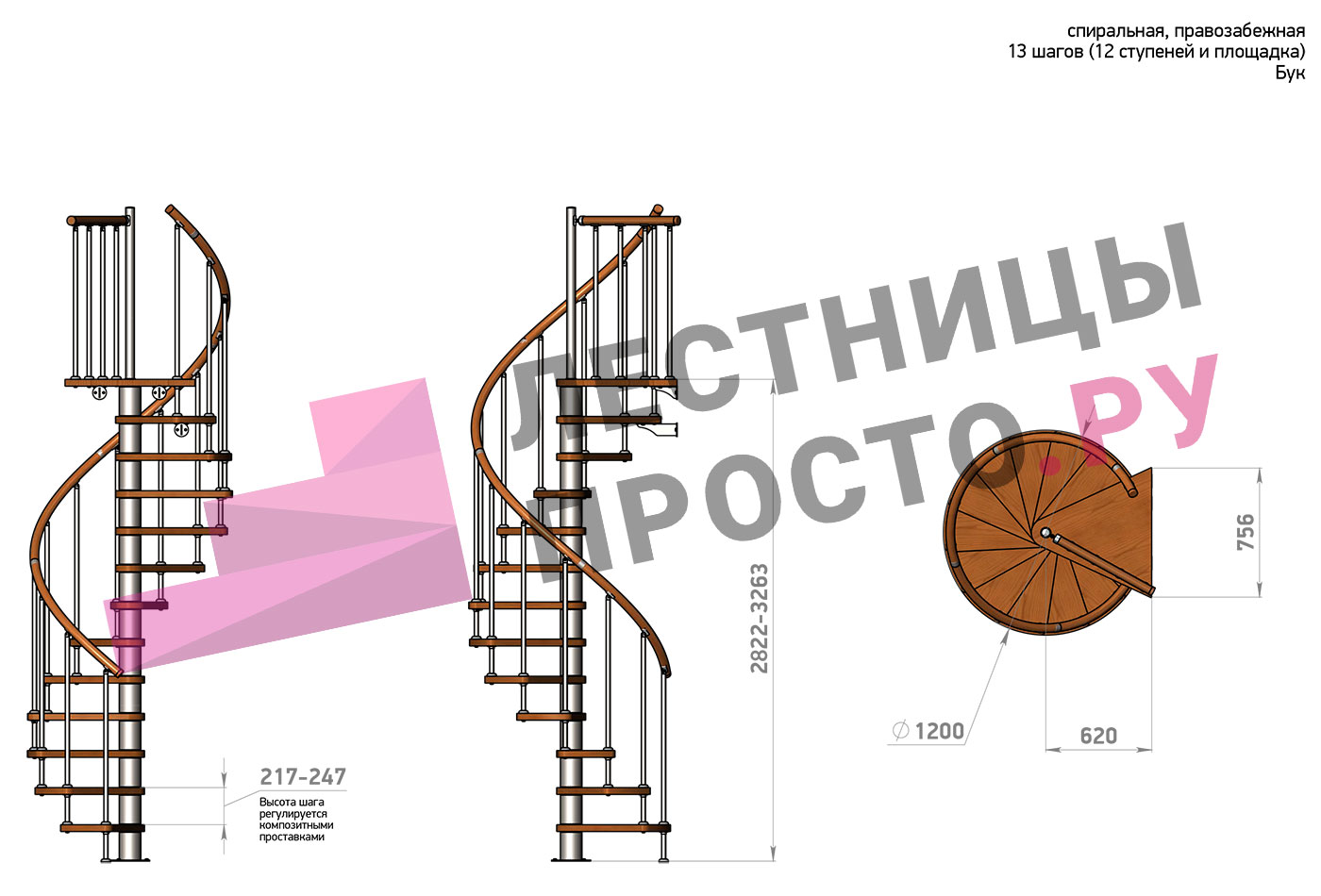 | Винтовая лестница Prosto Spiral White D120см, h282.2-326,3 см, бук |