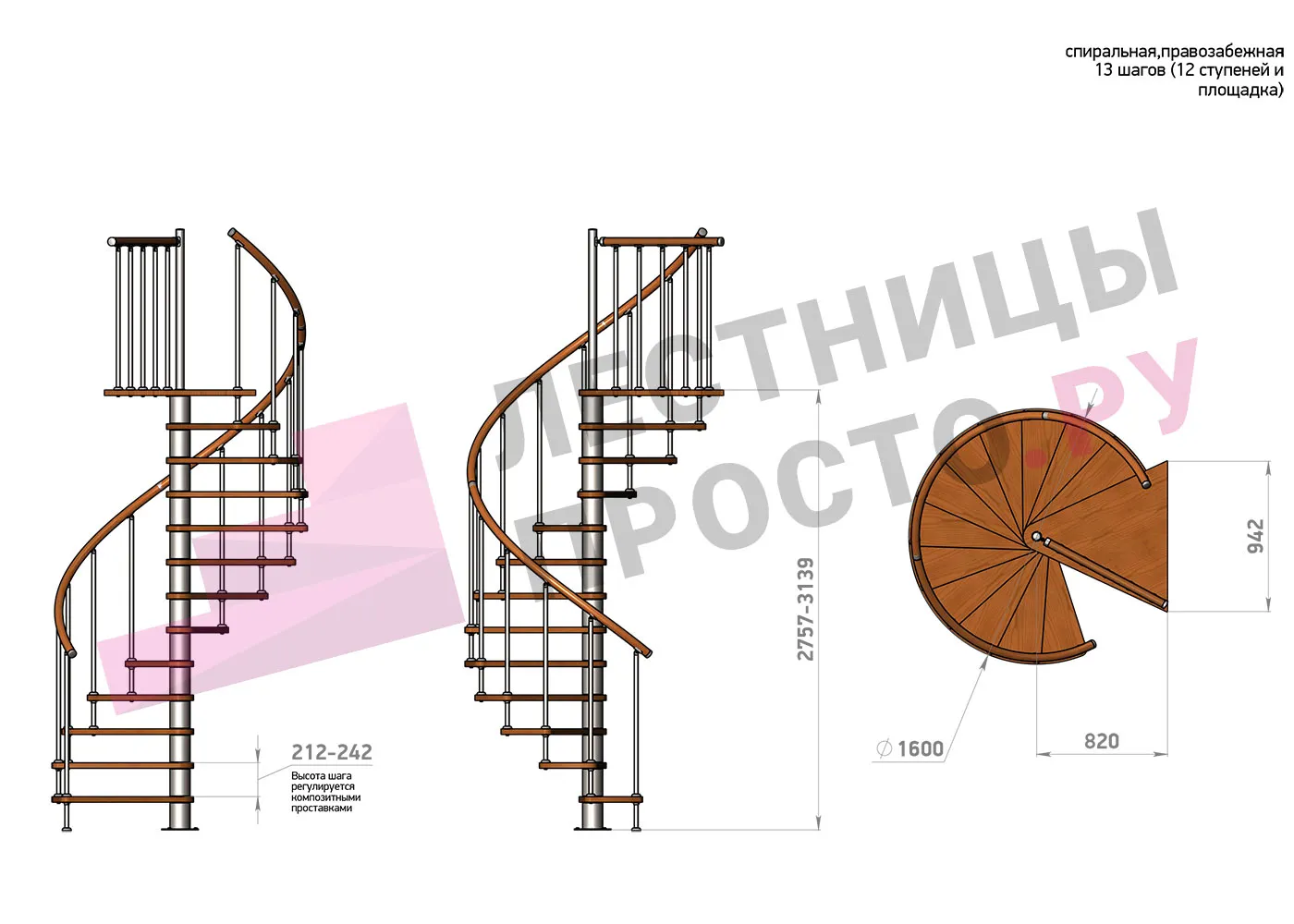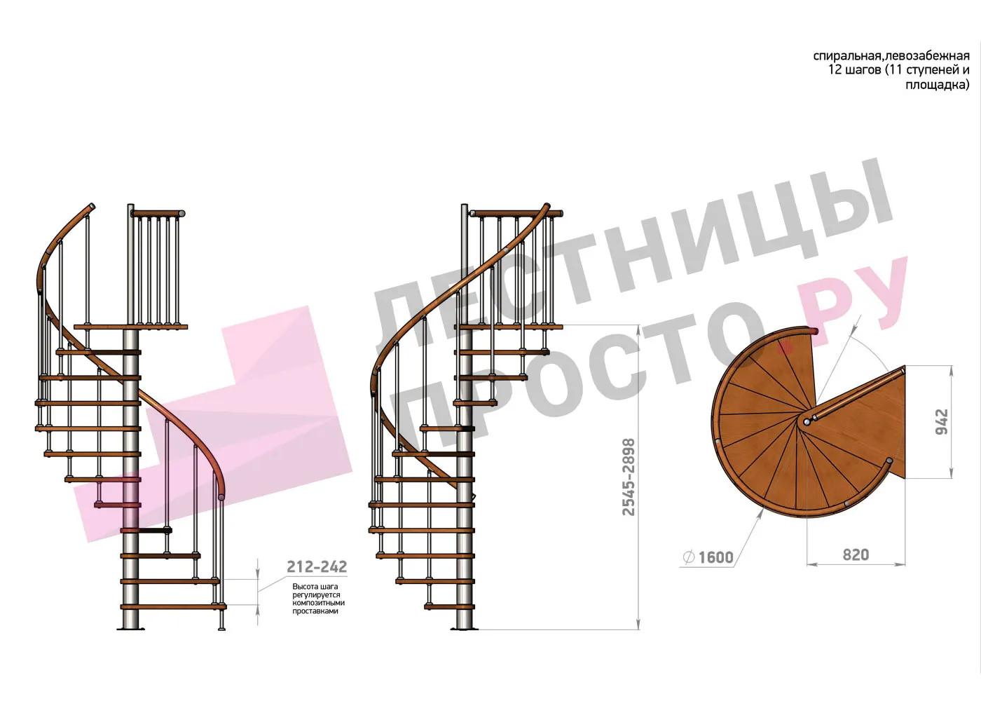 | Винтовая лестница Prosto Spiral White D160см, h275.7-313.9 см |