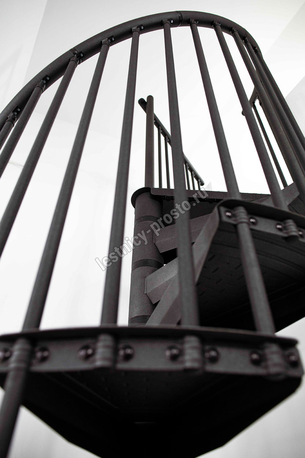 По запросу возможно конфигурирование набора до максимальной высоты 346 см. Все металлические элементы покрыты порошковой краской высочайшего качества графитового цвета, устойчивого к царапинам и механическим повреждениям. Профилированные нескользящие ступени из листового металла в клетку, снабженные небольшим подступенком для большей безопасности. Алюминиевые поручни с высококачественным порошковым покрытием. Напольные перила по запросу, прямые или круглые.