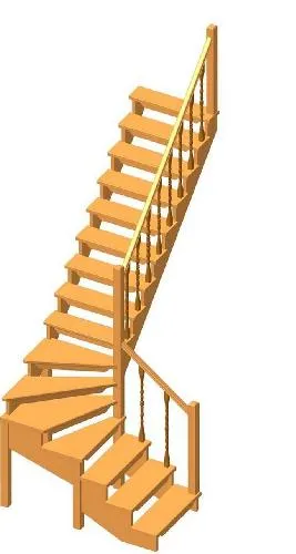 Лестница представлена в двух вариантах: с поворотом направо и с поворотом налево. Благодаря возможности регулировать высоту шага с помощью пластиковых вставок (входят в базовый комплект), высоту лестницы можно варьировать в пределах от 2860 до 3090 мм. Кроме того, купив дополнительную секцию для этой лестницы, можно поднять высоту до 3320 мм. Перила изготовлены из алюминия и окрашены "под дерево".
