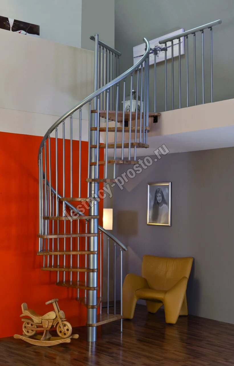 Винтовая лестница SPIRAL EFFECT d160 см, серебро, бук лакированный
