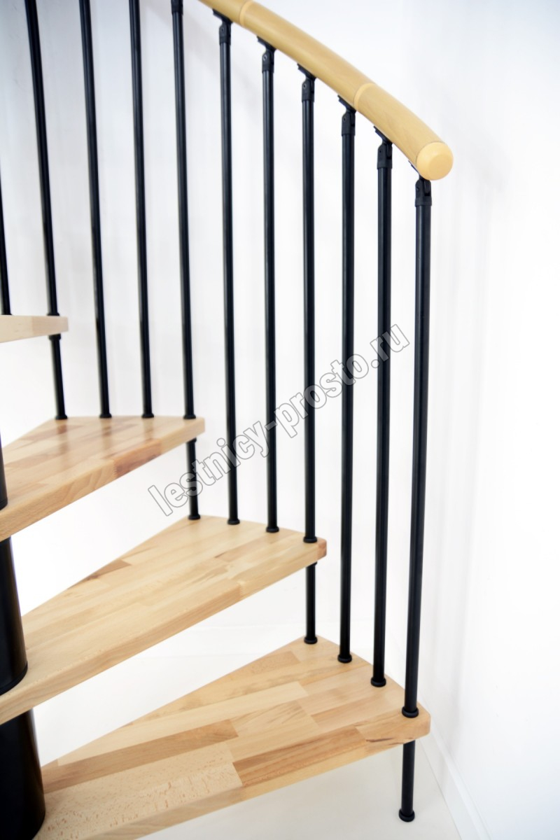 Перила изготовлены из массива бука и покрыты износостойким лаком.