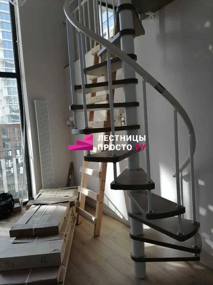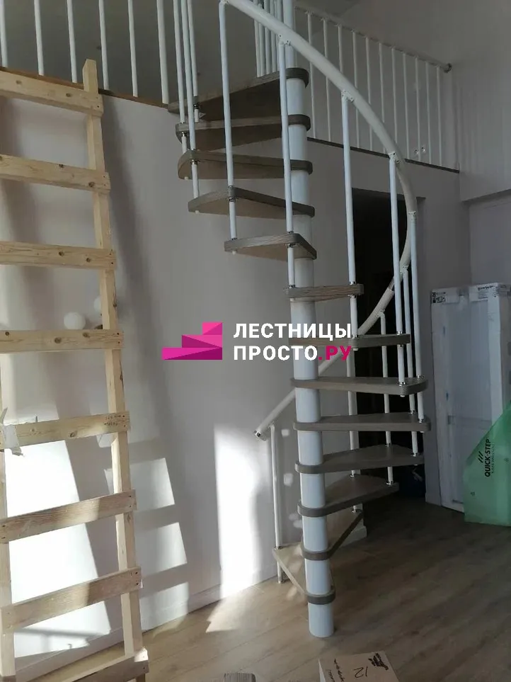 Винтовая лестница PROSTO SPIRAL WHITE в двухуровневой квартире